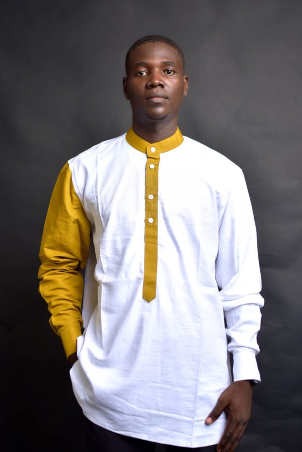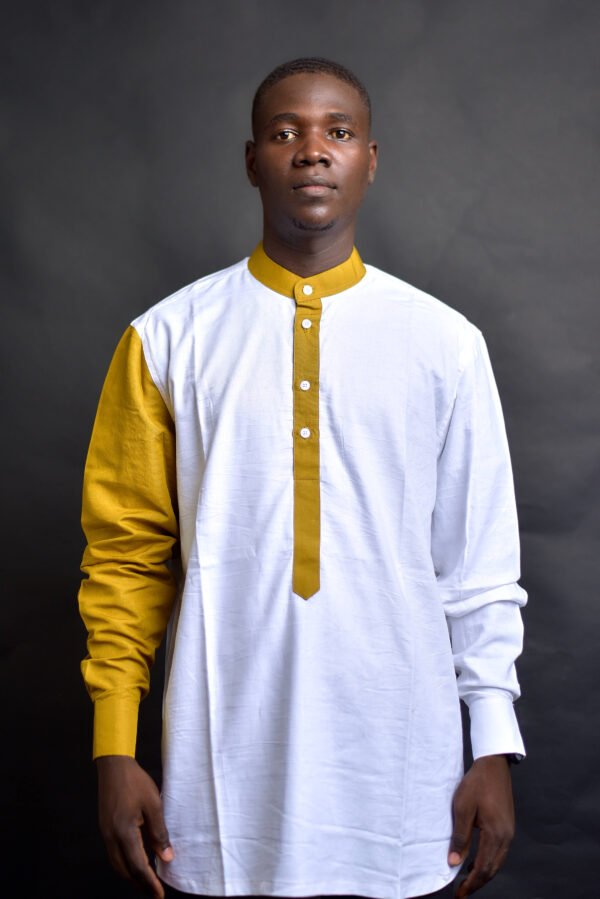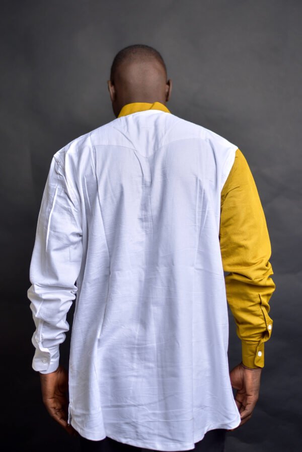 La Chemise Noé est une pièce élégante et moderne, mêlant un corps blanc pur à des manches et un col en jaune moutarde vibrant. Avec ses boutons discrets et sa coupe droite, elle offre un look sophistiqué et versatile, parfait pour un style raffiné sur Kashara.