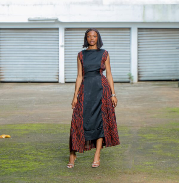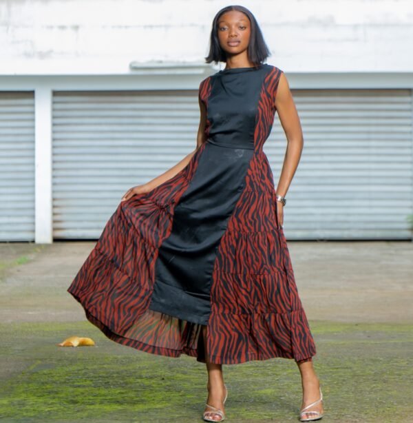 La Robe Agathe est une pièce élégante et moderne, combinant un rose tendre sur le haut et un noir profond sur la jupe longue. Sa coupe cintrée à la taille et ses manches longues offrent un style raffiné, parfait pour un look chic et audacieux sur Kashara. Idéale avec des talons noirs.