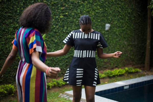 La Robe Cauri est une pièce audacieuse et élégante, conçue dans un tissu blanc orné de motifs noirs et dorés inspirés de cauris. Sa coupe longue et fluide, avec des manches évasées, offre un style bohème chic, parfait pour un look sophistiqué sur Kashara. Idéale avec des sandales dorées.