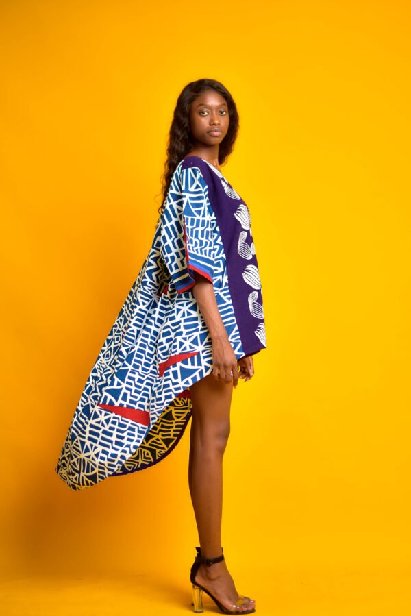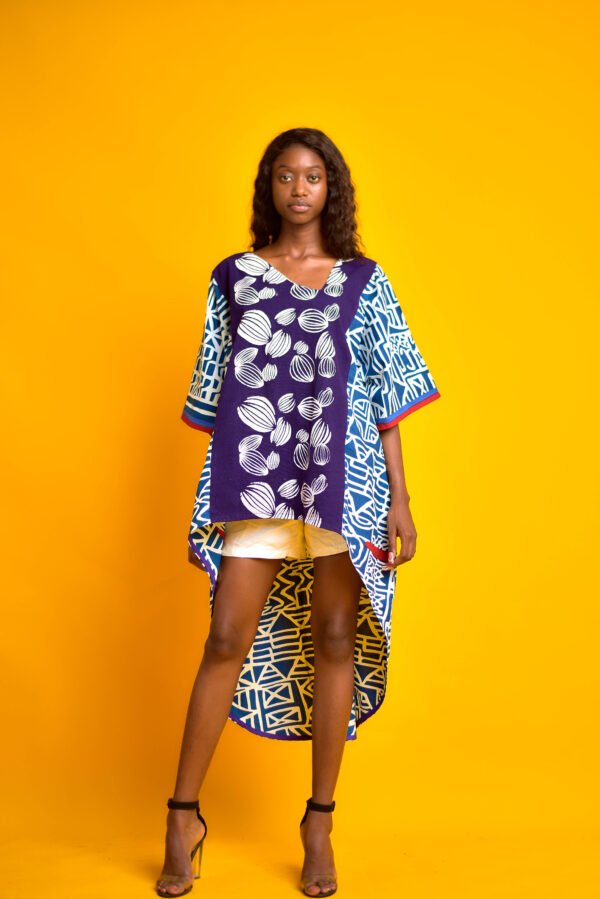 Top Olivia, une pièce audacieuse signée Kashara qui célèbre le style africain avec une touche contemporaine ! Ce haut asymétrique et fluide se distingue par ses imprimés géométriques en bleu, blanc et rouge, rehaussés de motifs organiques sur fond violet. Sa coupe ample et élégante, parfaite pour un look sophistiqué, s’associe idéalement à des talons hauts pour une allure affirmée. Un incontournable pour une garde-robe moderne et vibrante !
